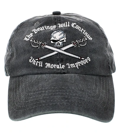 This fun Pirates of the Caribbean Baseball Cap Reads, The Bearings will Continue until Morale Improves.